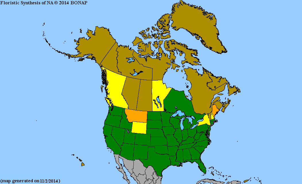 - ^ Kartesz, John T. (2014). "Cyperus erythrorhizos". State-level distribution map from the North American Plant Atlas (NAPA). Biota of North America Program (BONAP). Retrieved 13 February 2026.