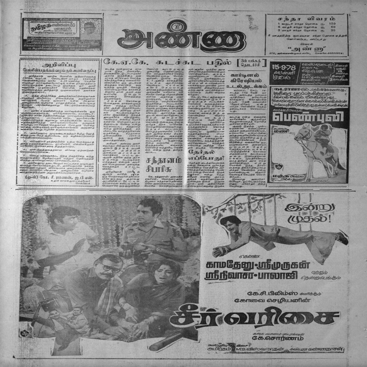 - ^ "சீர்வரிசை". Anna (in Tamil). 14 September 1978. p. 4. Archived from the original on 13 October 2025. Retrieved 13 October 2025 – via Endangered Archives Programme.