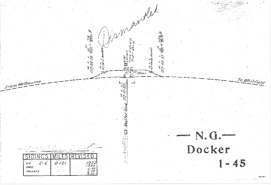 - ^ Victorian Railways (n.d.). Line Diagram – Docker (Line Diagram). Bau, M. Retrieved 8 January 2026.