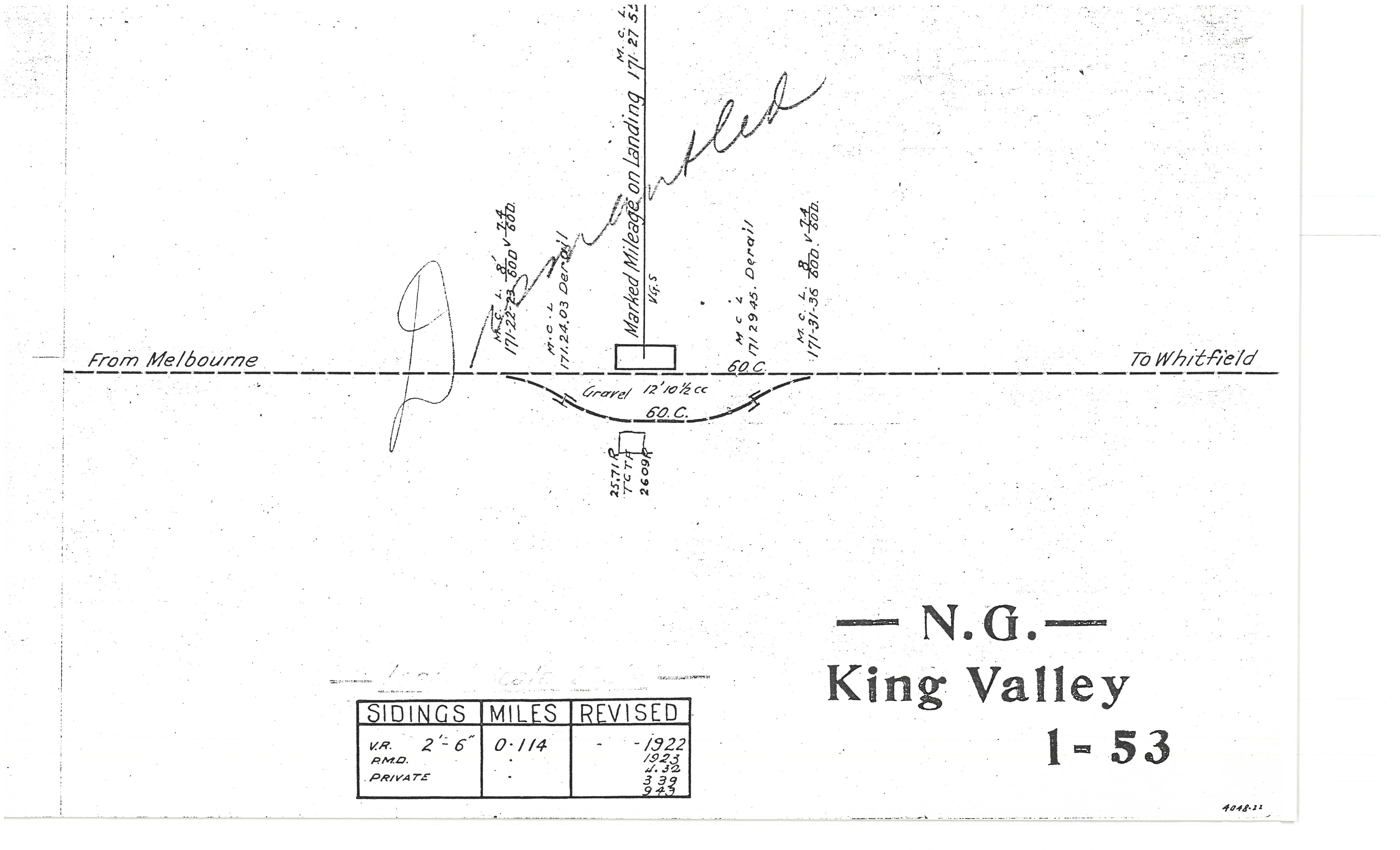 - ^ Victorian Railways (n.d.). Line Diagram – King Valley (Line Diagram). Bau, M. Retrieved 8 January 2026.