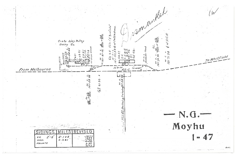 - ^ Victorian Railways (n.d.). Line Diagram – Moyhu (Line Diagram). Bau, M. Retrieved 8 January 2026.